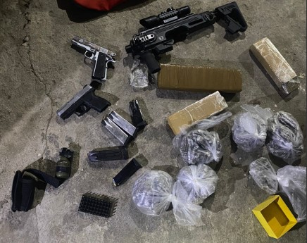 Em diligência na casa, os militares foram recebidos pela proprietária, que permitiu as buscas. A PM localizou no forro do teto do imóvel uma granada, duas pistolas (calibres 380 e 40), cinco carregadores de pistola, 36 munições, um kit roni e uma luneta, além de 3 kg de maconha e 410 buchas da droga.