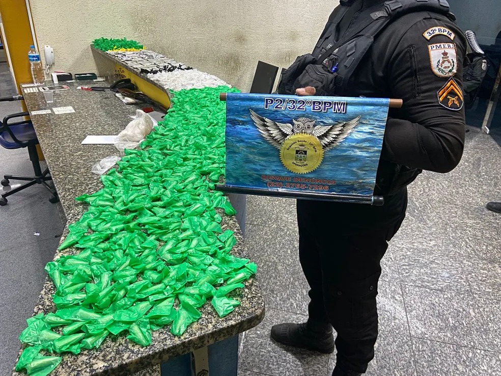 Ao chegaram ao local identificado pela vítima, Policias Militares apreenderam 661 pinos de cocaína, 668 pedras de crack e 119 envelopes de maconha, no bairro Bela Vista.