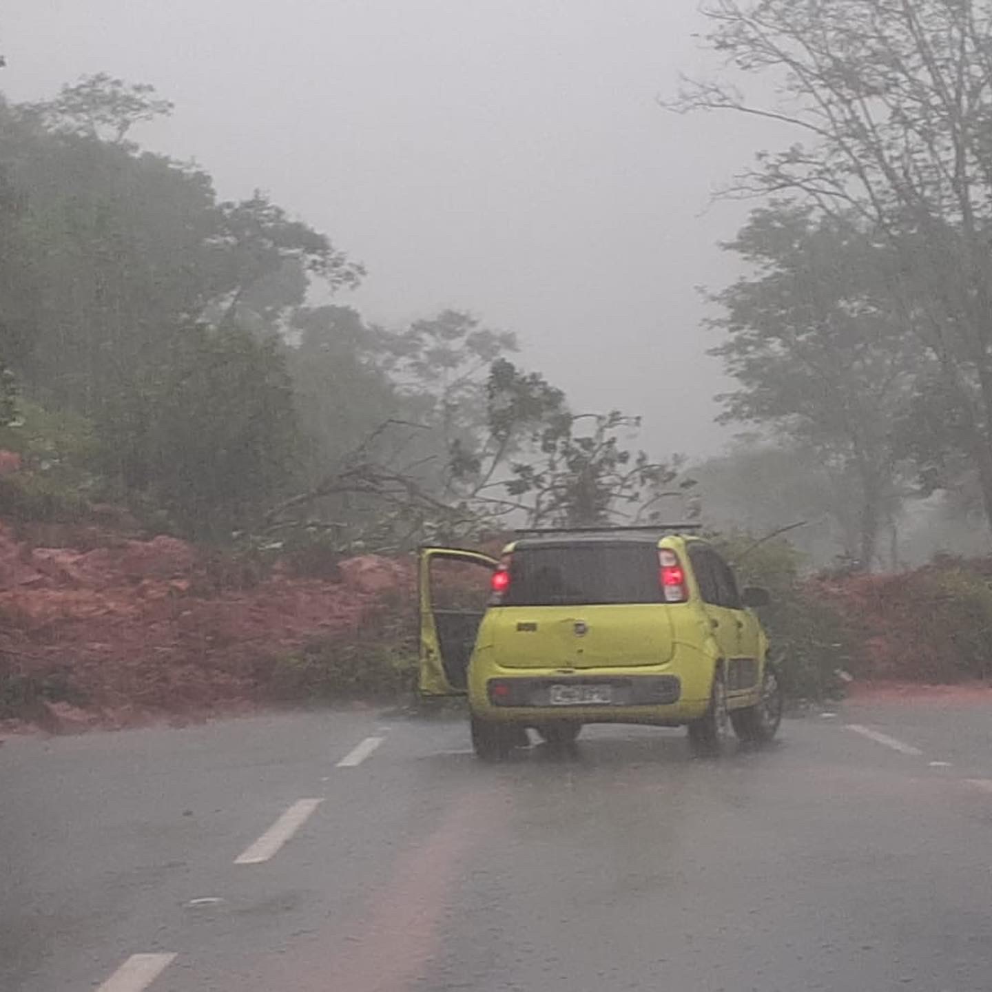Um desmoronamento de terra acaba de bloquear a RJ-106, próximo a entrada do bairro Mirante da Lagoa, sentido Macaé, nesta quarta-feira (30).