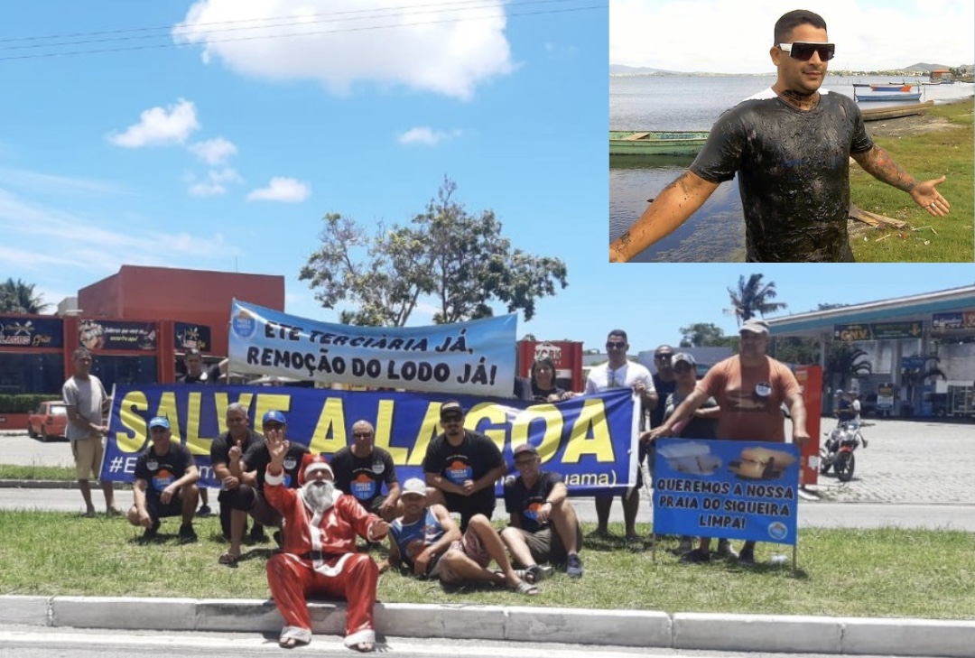 Com bandeiras escritas: “Prolagos acabou com o turismo da região” e “se o Consórcio Lagos São João fosse bom, a lagoa estaria um brinco”; o grupo protestou contra a atuação das empresas que, segundo organização do ato, nada fazem para a despoluição da laguna, que se estende por seis municípios: Araruama, Saquarema, Iguaba Grande, São Pedro da Aldeia, Cabo Frio e Arraial do Cabo.