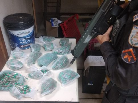 Os agentes receberam informações de que homens estariam escondendo material entorpecente em um terreno baldio, na Rua Luiz Feliciano Cardoso.