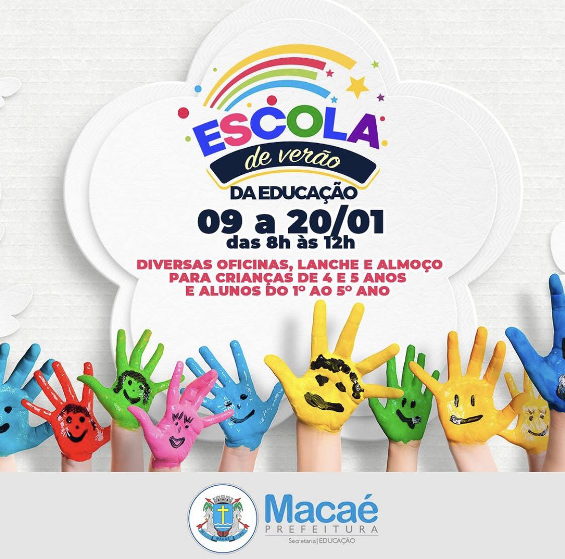 Macaé está com inscrições abertas para Colônia de Férias – “Escola de Verão”, nas onze escolas municipais que serão polos do projeto. Os pais ou responsáveis pelos estudantes interessados, devem comparecer em uma das unidades, presencialmente, para cadastramento, até esta sexta-feira (6), das 8h às 12h.