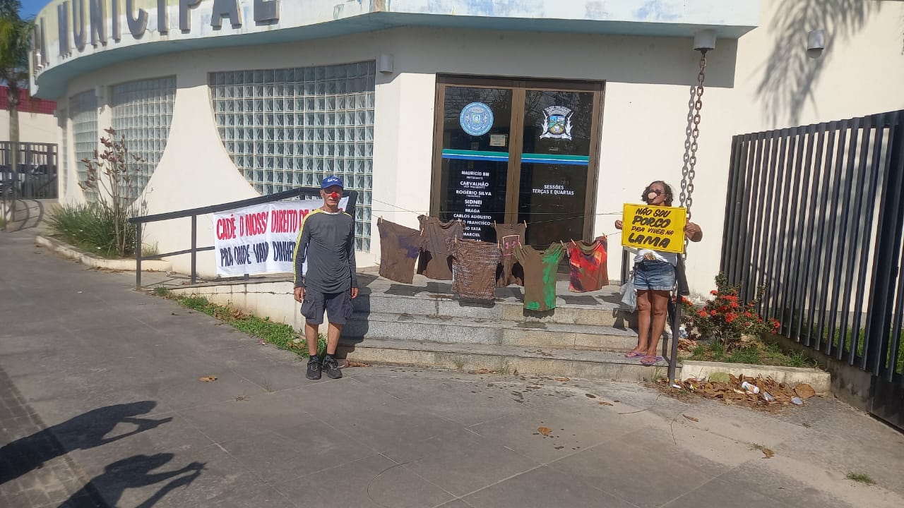 Com narizes de palhaço e de porquinhos, além de apitos, blusas, cartazes e diversas faixas com os dizeres: “SOS Enseada das Gaivotas”, “Não sou porco para viver na lama”, “Cadê nosso direto de ir e vir, pra onde vai o dinheiro do nosso IPTU?”, “Nossa dignidade está enterrada na lama”, “Enseada agonizando”, “Enseada: alegria dos mecânicos” e muitas outras; eles percorreram todo trajeto da Câmara até Prefeitura Municipal da cidade.