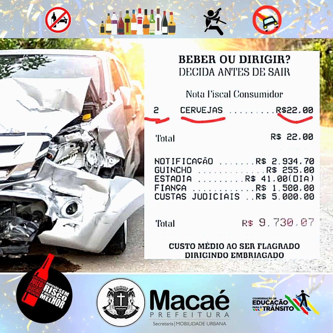 Por isso, a Secretaria de Mobilidade Urbana de Macaé, lançou a campanha “Beber ou dirigir? Decida antes de sair”.