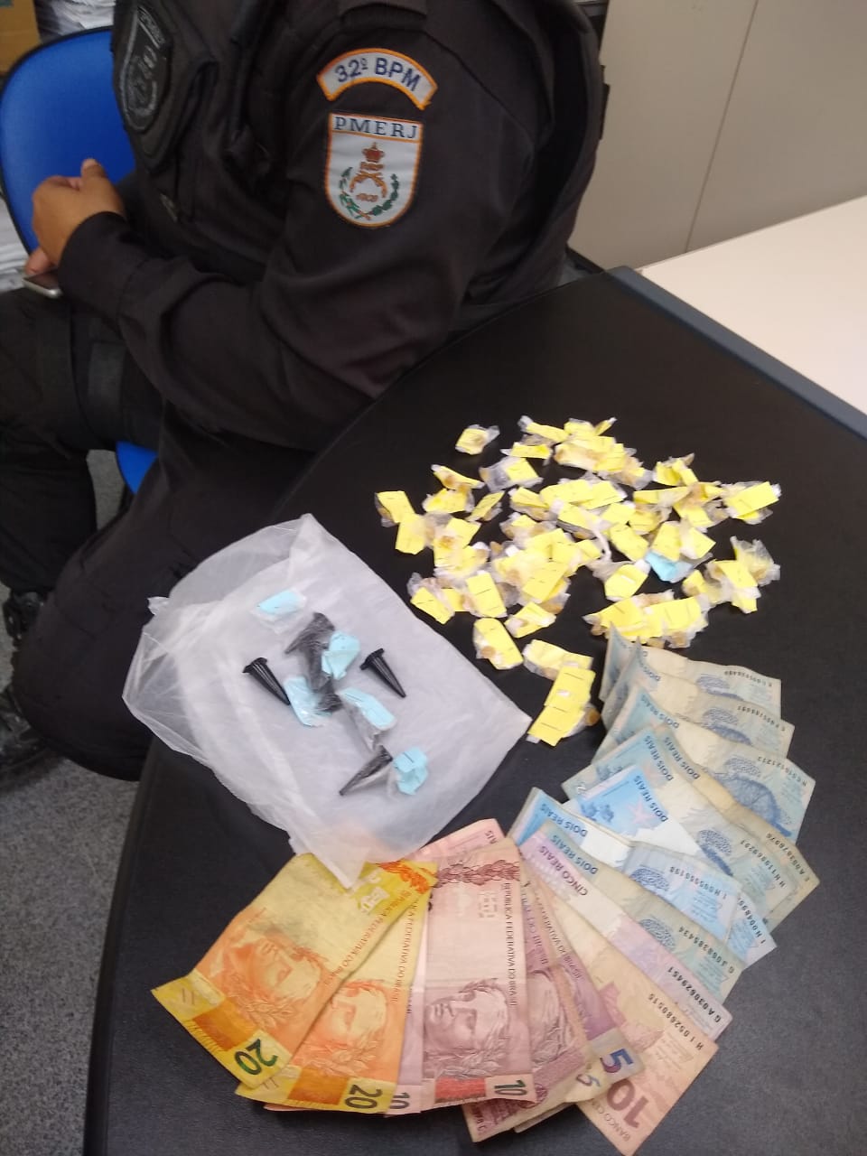 Em Macaé, a Polícia Militar prendeu uma mulher envolvida com o tráfico de drogas, na Favela da Linha. A guarnição recebeu uma denúncia de que uma mulher grávida estaria traficando naquela localidade. Após cerco tático, a mesma foi abordada , e com ela foi encontrado 63 pedras de crack, 07 pinos de pó branco e R$ 115, em espécie. Ela foi conduzida para a 123ª DP.