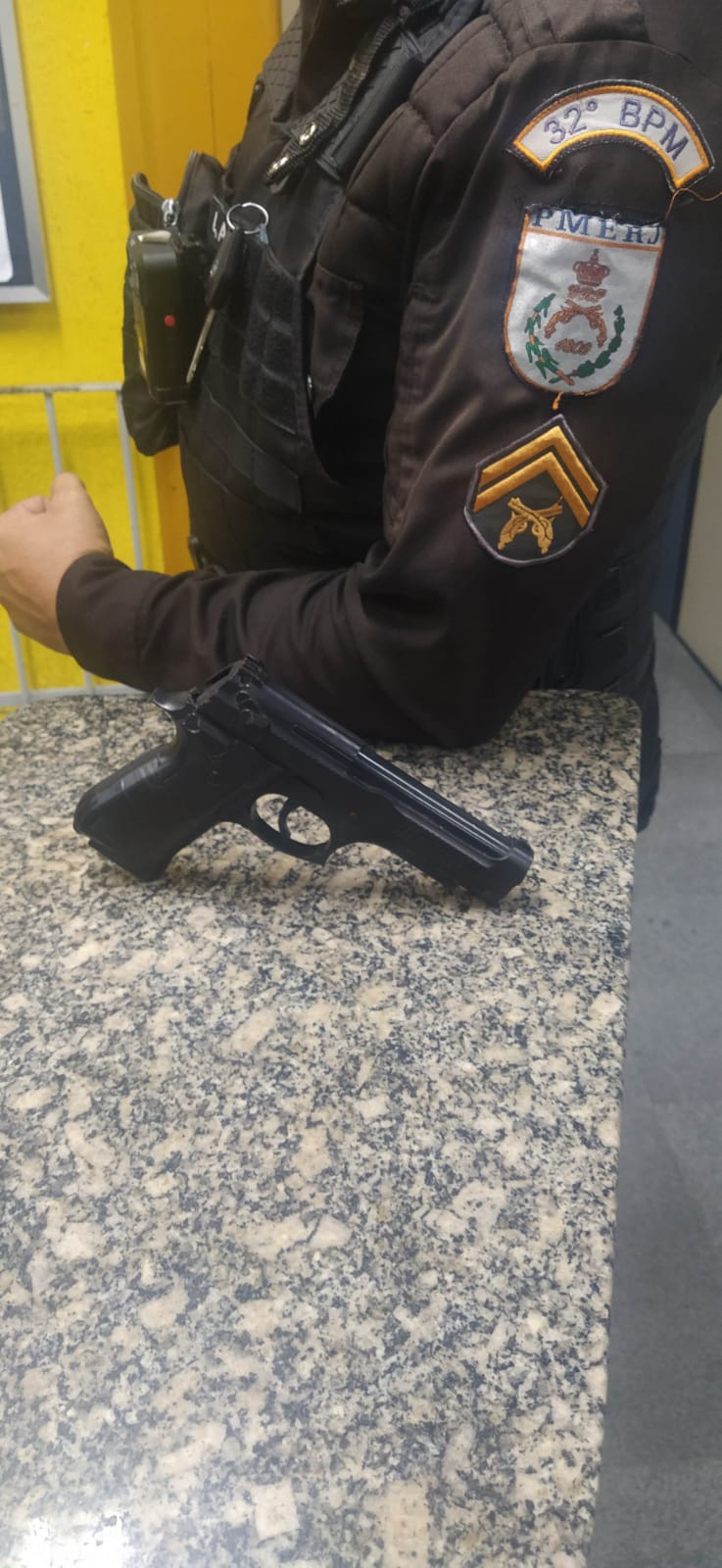 Dados os fatos, o elemento, uma vítima e armamento apreendido, foram encaminhados para 123ª Delegacia de Polícia Civil (123ªDP) para abertura de Boletim de Ocorrência (BO) e procedimentos para detenção. Cabe ressaltar que a ferramenta usada pelo assaltante tratava-se de um simulacro, ou seja, uma representação ou imitação de uma real.