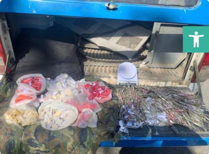 Na manhã desta segunda-feira, 01, a Polícia Militar apreendeu 540 buchas de maconha, 420 cápsulas de cocaína, uma balança de precisão, um colete balístico completo e uma gandola camuflada, na comunidade Rainha da Sucata, no bairro Monte Alegre, em Cabo Frio.