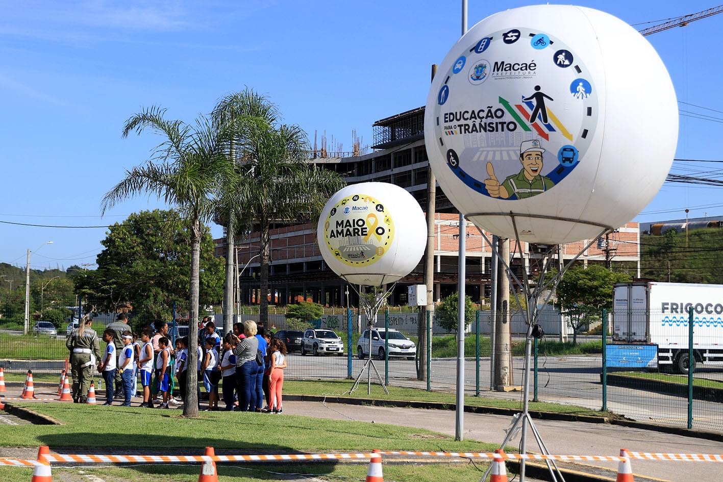 Com objetivo de proporcionar vivência e aprendizado sobre o trânsito e suas sinalizações, a Coordenadoria de Educação para o Trânsito da Secretaria de Mobilidade Urbana montou o Circuito Escolar, no estacionamento do Shopping Plaza Macaé.