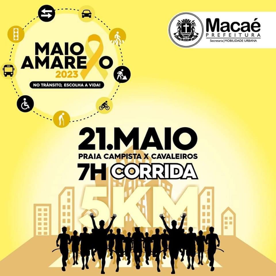 Neste domingo (21), em Macaé, será realizada a 2ª Corrida do Maio Amarelo, com objetivo de disseminar o movimento mundial que busca a redução do índice de acidentes e vítimas no trânsito.