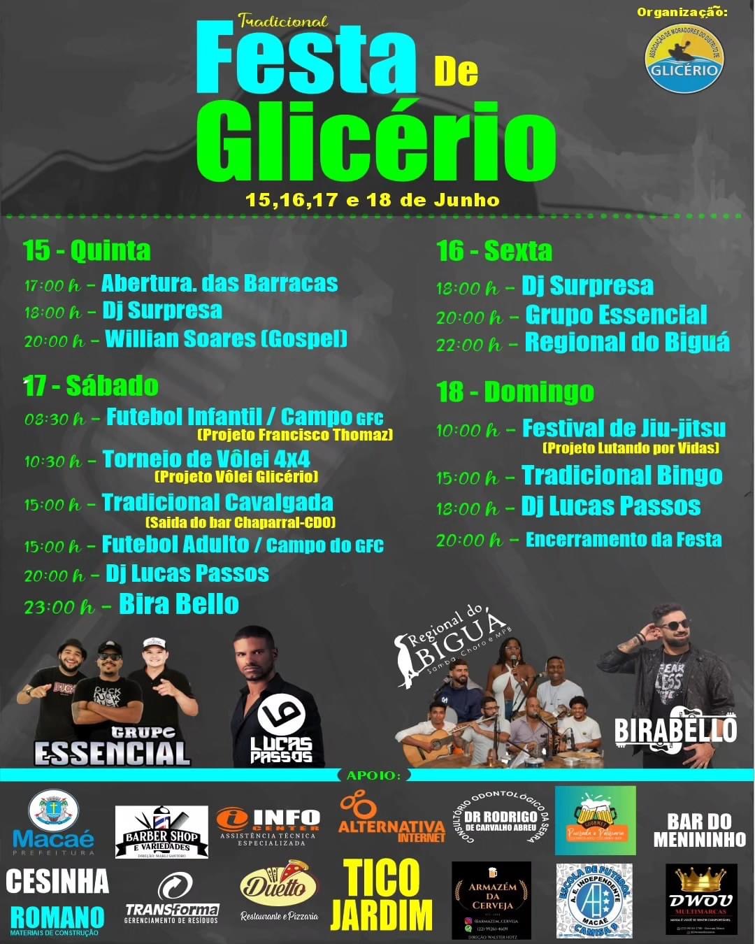 A tradicional Festa de Glicério, na Região Serrana de Macaé retorna com toda sua alegria e curtição. Os festejos começam nesta quinta-feira (15) e seguem até domingo (18). Moradores e visitantes poderão desfrutar de muita música, esportes e culinária regional.