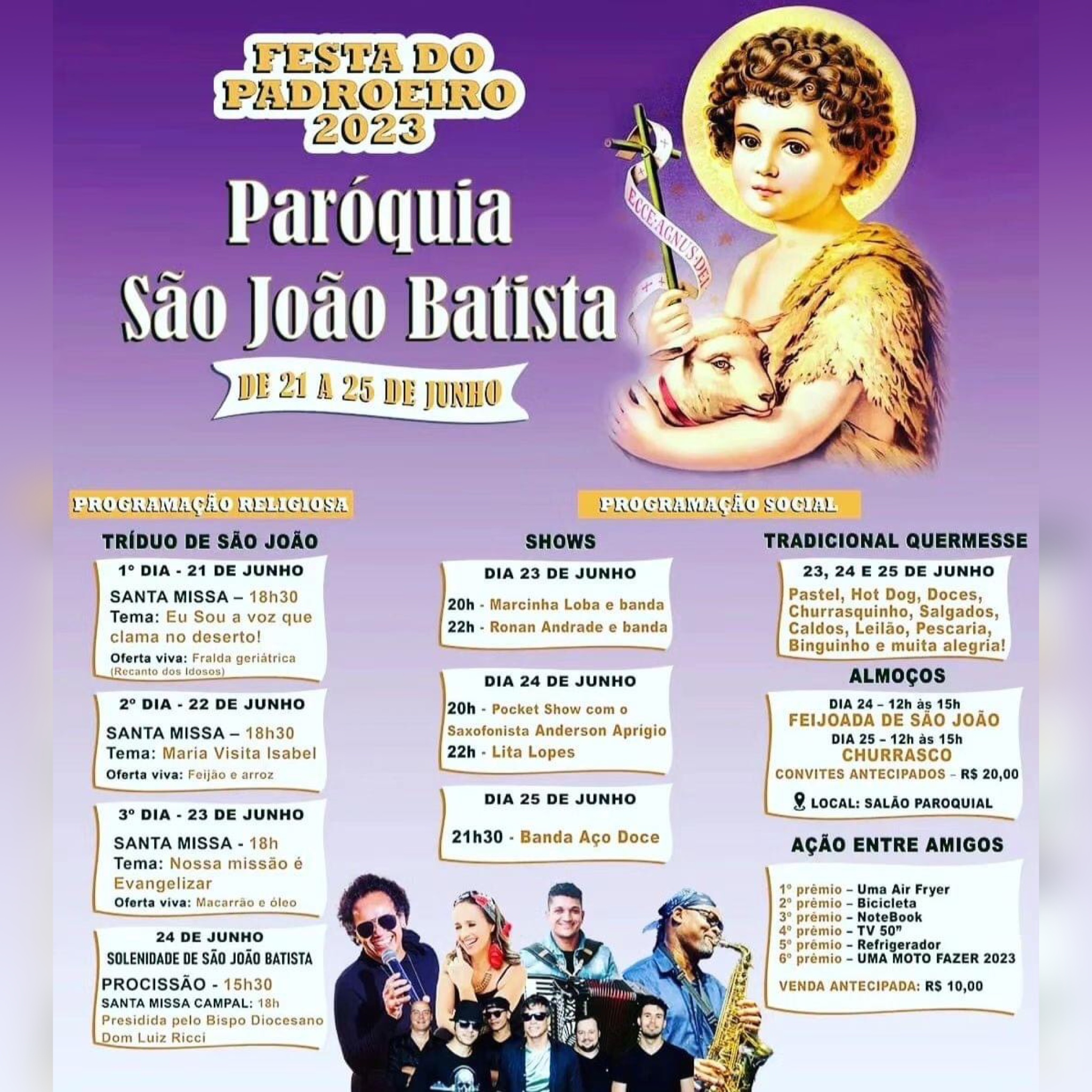 A tradicional quermesse está pronta, com comidas típicas, além de feijoada e churrasco. Diversos sorteios com excelentes prêmios também estão prontos para toda população. Para participar, só dar uma passadinha na Paróquia que fica em frente à Praça Veríssimo de Mello.