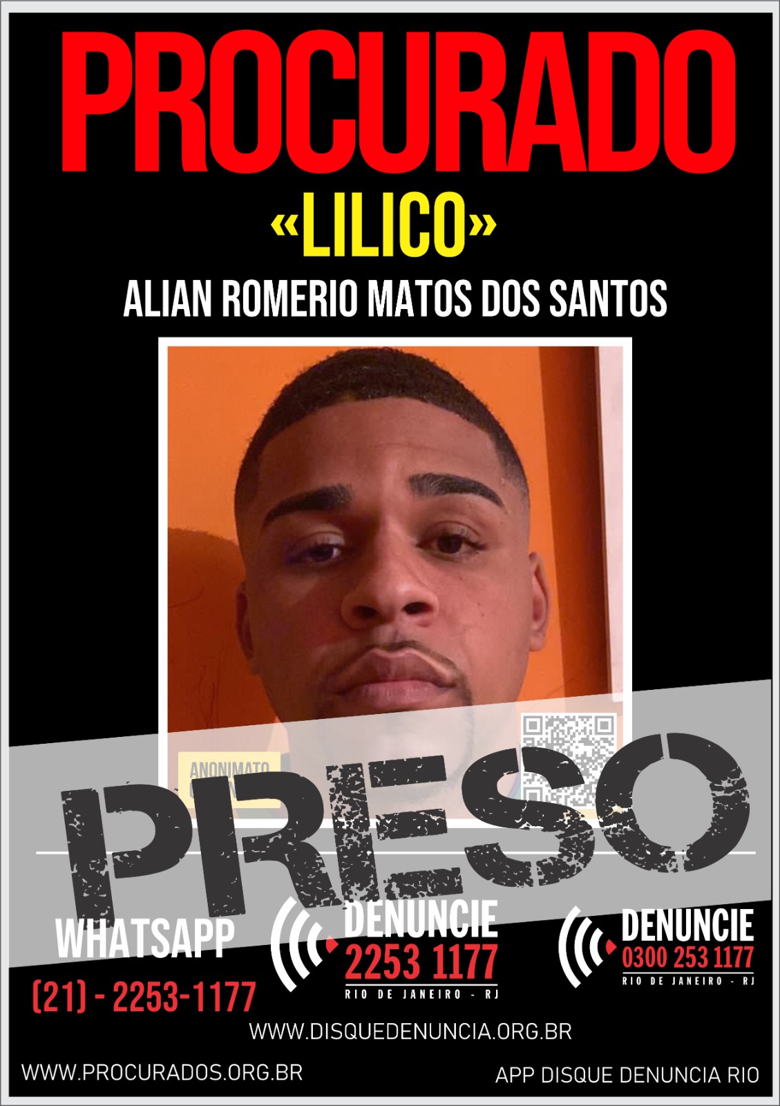 Denuncie a localização de foragidos da Justiça, de forma anônima, ao Disque Denúncia: