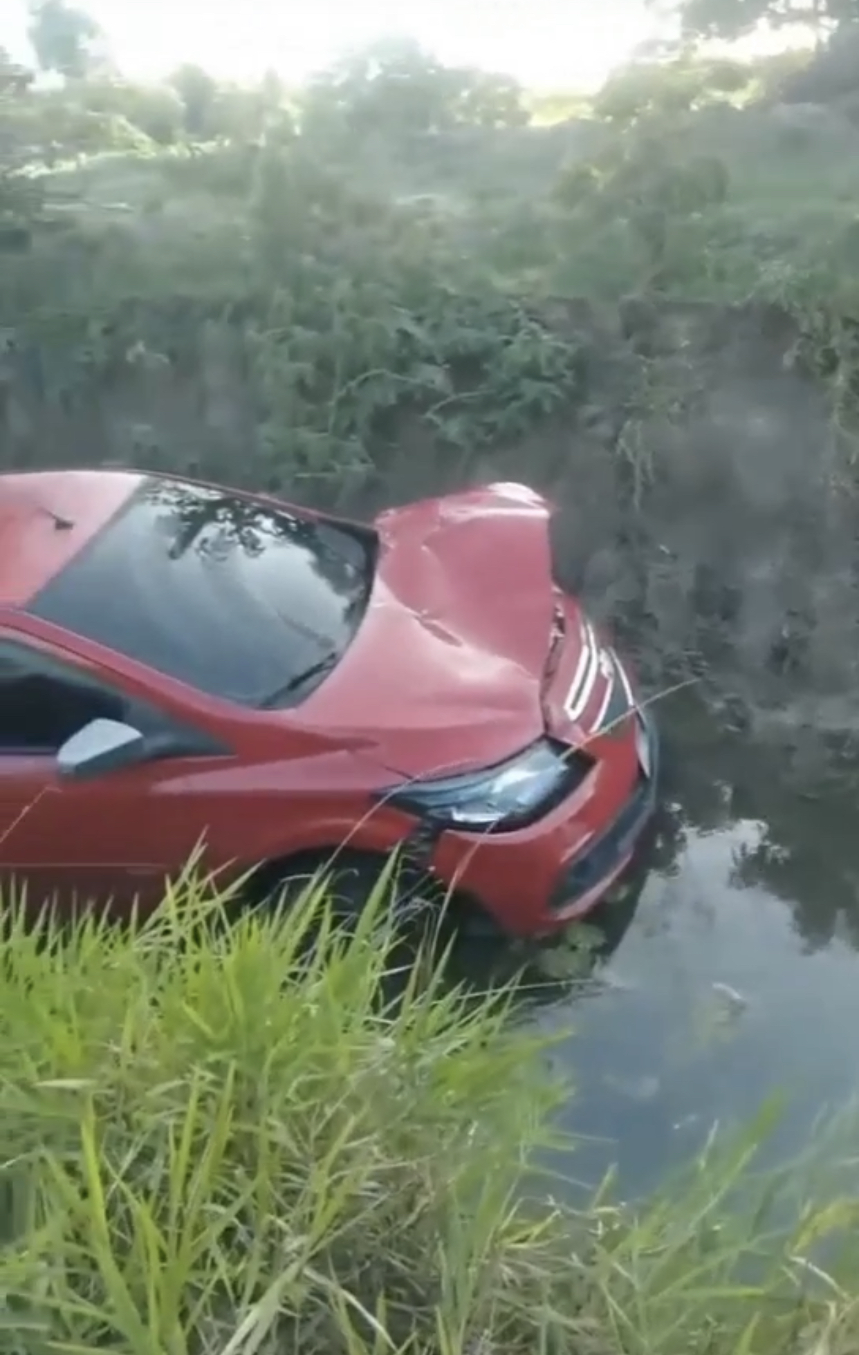 No domingo (16), um carro caiu em um valão no bairro Baía Formosa, na Estrada da Fazendinha, em Búzios.
