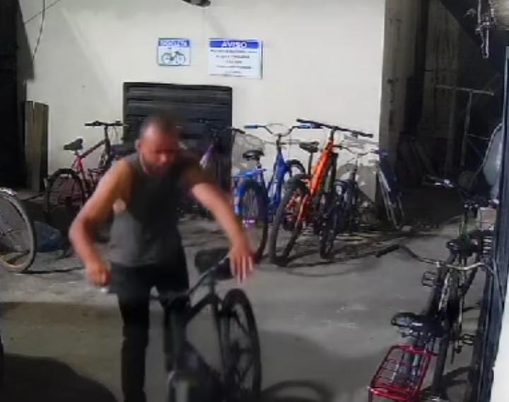 Câmara de segurança de um prédio registrou a ação de um homem furtando bicicletas, na noite dessa quinta-feira, 12, num edifício da Praia dos Cavaleiros, em Macaé.