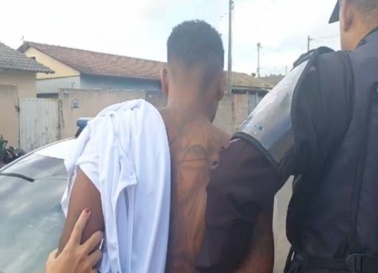 O homem tentou fugir dos policiais pulando o muro de sua residência, mas imediatamente alcançado e autuado em flagrante por crime de lesão corporal.