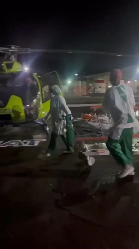 A criança foi levada inicialmente ao Hospital Municipal Otime Cardoso dos Santos, no bairro Jardim Esperança. Durante o atendimento, ela sofreu uma parada cardiorrespiratória, mas foi estabilizada pela equipe médica local. Devido à gravidade das lesões, a transferência aérea foi acionada. Em um voo de cerca de 30 minutos, o helicóptero da Superintendência de Operações Aéreas da Secretaria de Estado de Saúde transportou a criança até o CTI do HEAT, onde ela permanece internada em estado considerado gravíssimo.