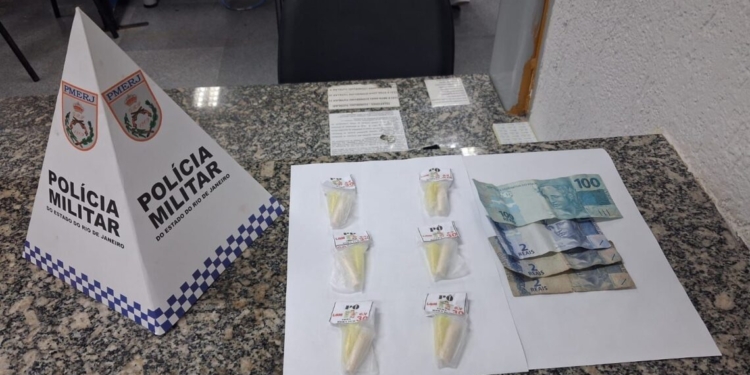 Segundo a PM, durante a ronda, o suspeito tentou se desfazer de uma sacola ao perceber a presença da viatura, arremessando-a em um terreno baldio e tentando fugir. Na abordagem, os agentes encontraram R$ 106 em espécie e, após buscas na área, localizaram a sacola, que continha 12 pinos de cocaína.