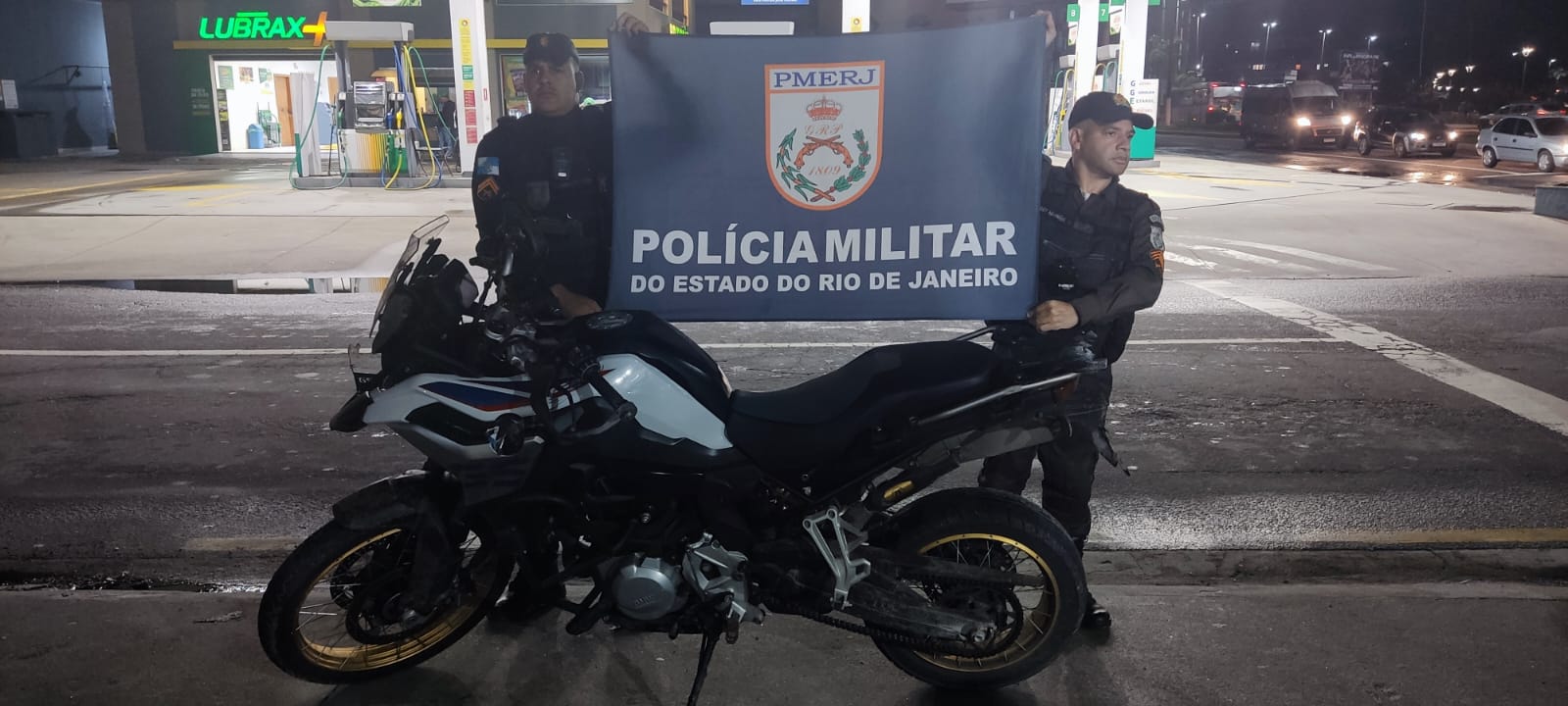 A motocicleta, uma BMW sem placa, foi identificada como clonada. Apesar das buscas realizadas no local, nenhum entorpecente foi encontrado.