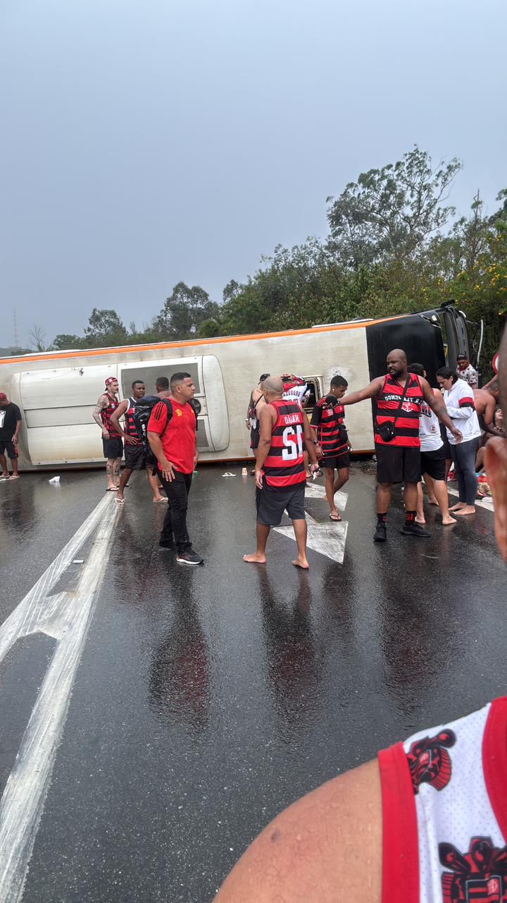 O grupo viajava rumo à Argentina, onde o time rubro-negro disputa a semifinal da Copa Libertadores da América, quando o veículo tombou no sentido São Paulo. Segundo a Polícia Rodoviária Federal (PRF), três feridos estão em estado grave, e todos foram socorridos por equipes do Serviço de Atendimento Móvel de Urgência (Samu) e da concessionária CCR RioSP, sendo encaminhados a hospitais da região.